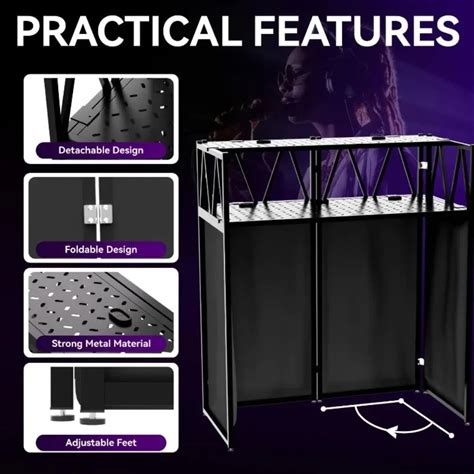 Prox Vista DJ Booth And Workstation With Scrim Kit - Black Hardware Foldable DJ Booth And Workstation With Aluminum Frame, Ventilated Table And