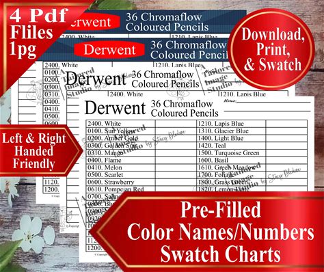 Derwent Chromaflow 100 Swatch Chart For Colored Pencil Set | DIY Printable PDF Color Chart Swatch Page | US Letter & A4 Size Paper