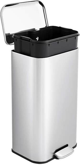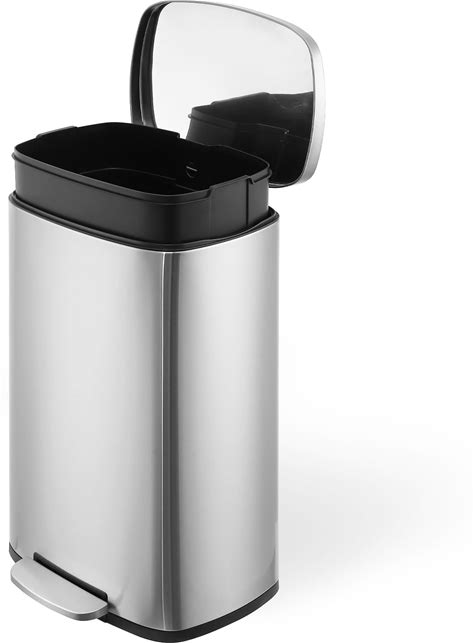 13 Gallon Kitchen Trash Can With Dual Compartments For Recycling, Stainless Steel, Silver, 50 Liters