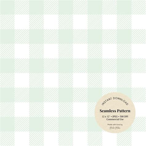 Light Green Gingham Pattern: Pastel Check Digital Paper (JPG Digital Download)