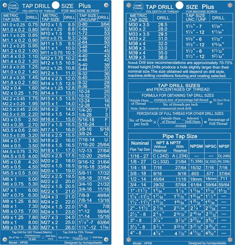 Thread Chart (Metric Threads) - Major and Minor Diameters