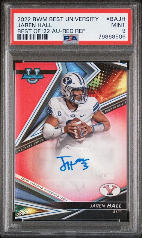 2022 Bowman Best University Jaren Hall Red Refractor /10 Auto Psa 9