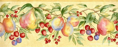 Fruits Wallpaper Border,Yellow Green Red Berries Hanging Fruits Trail Leaves Country Kitchen Wallpaper Border,Traditional Fruit Wall Border