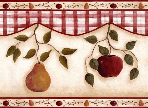 Country Farm Fruits Vine Wallpaper Border - Rustic Farmhouse Wall Decor - Red Gingham, Pear, Apple - 13.5" Wide Border
