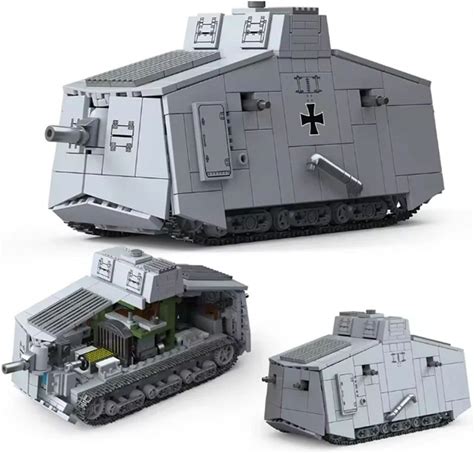 WW1 Military Army Soldiers World War I Heavy Tank Mk.V A7V Heavy Tank Model Assemble Building Blocks