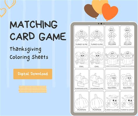 Matching Card Game | Digital Download | Instant Download | Thanksgiving |Matching Card Game Printable | Memory Card Game