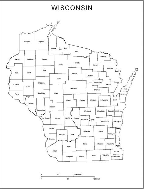 Map of Wisconsin - Countie