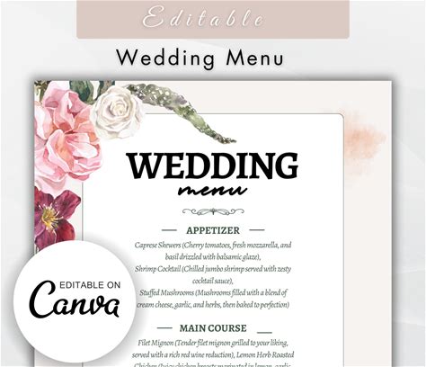 Love In Bloom Menu Template, Editable Menu Card, Canva Menu Template, 5X7 & 4X9 Personalized Menu, Editable Printable Menu, Digital Download
