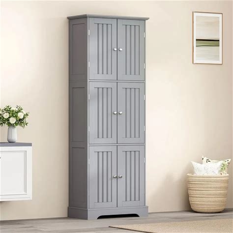 Tall 6-Door Storage Cabinet With Adjustable Shelves, Freestanding Floor Cabinet For Bathroom Kitchen
