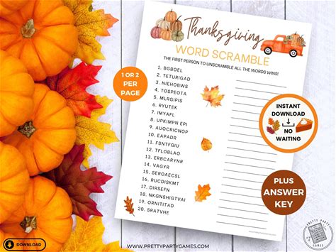 Thanksgiving Word Scramble, Autumn Instant Download, Holida