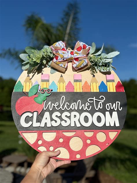 Welcome To Our Classroom Sign, Digital Download, Glowforge Laser File, Cricut, Round Door Hanger Svg, Teacher Gift, School Svg, Personalize