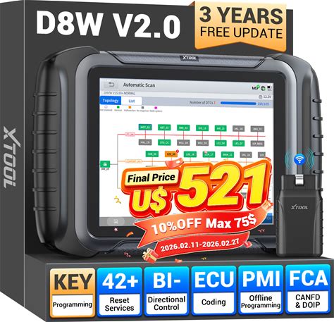 2026 XTOOL D8W V2.0 Auto Diagnostic Tool FCA Scanner Key Programmer Topo Mapping