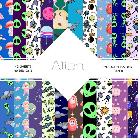 Alien Scrapbook Paper: | 40 Patterned Double Sided Sheets (20 Designs) | Alien Themed Collection | Alien Craft Paper |