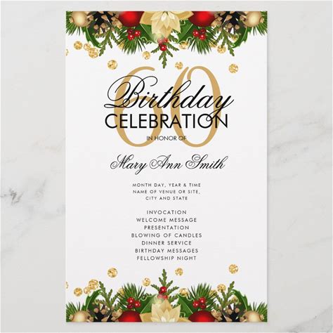 Holiday 60th Birthday Party Program Gold W/ Menu Flyer