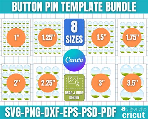 Button Pin Template Bundle, 7 Sizes, Editable Canva (Svg, Png, Pdf, Eps, Dxf, Psd), Instant Download