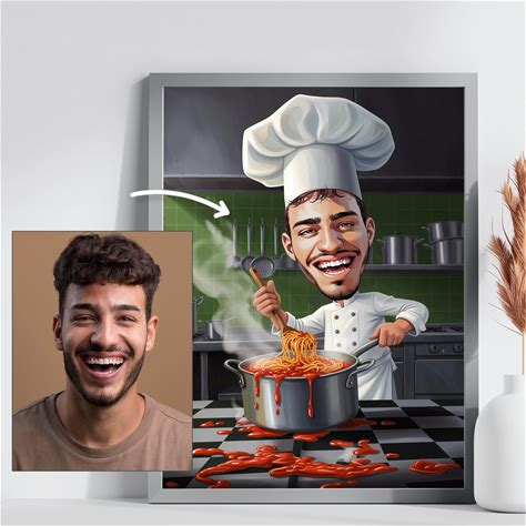 Custom Chef Portrait, Personalized Kitchen Caricature From Photo, Cooking Digital Wall Art, Restaurant Decor Gift, Italian Chef Drawing