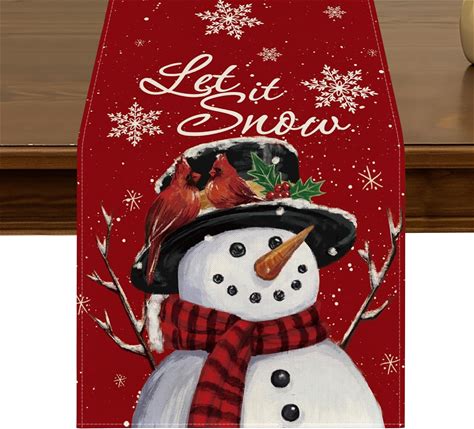 Black And White Christmas Table Runner With Snowman Tree Pattern For Winter Dining And Festive Decor
