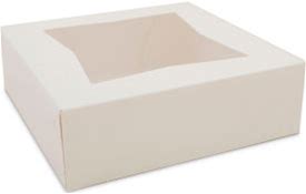 SCT Window Bakery Boxes With Attached Flip Top, 8"L X 8"W X 2-1/2"H, White, 200/Carton, SCH 24013