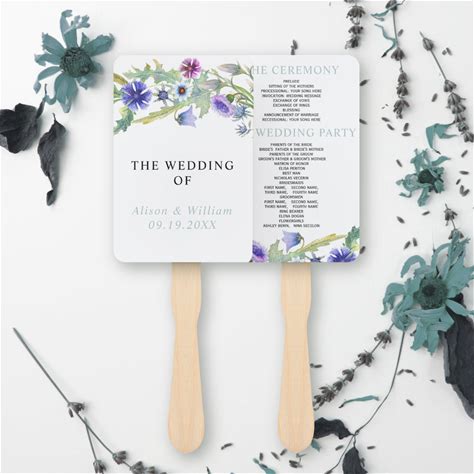 Watercolor Wildflowers Floral Wedding Program Hand Fan
