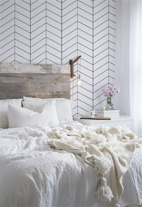 Black And White Herringbone Wallpaper, Scandinavian Chevron, Removable Peel And Stick