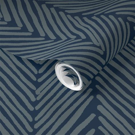 Pre-Pasted Wallpaper Herringbone Pattern - Indigo Design - Large 2' X 9' Removable