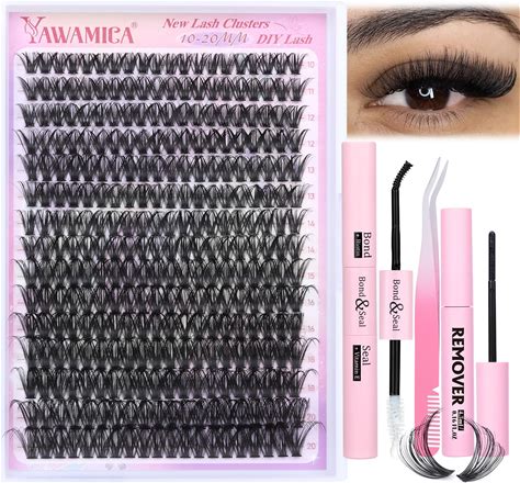 Yawamica DIY Lash Extension Kit 300Pcs Individual Clusters Eyelash Extensions 10-20mm 50D Lash Clusters Kit With Lash Bond And Seal, Remover And Lash