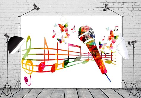 Loccor Fabric 5x4ft Colorful Music Backdrop Microphone Musical Notes Staff Artistic Abstract Photography Background Music Theme Events Birthday Party