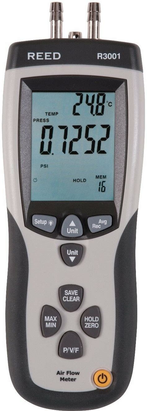 Reed Instruments Pitot Tube Anemometer: 0.8 Psi To 10 Psi, Backlit LCD, Differential Model: R3001