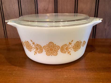 Pyrex 474-D Butterfly Gold 1.5 L Casserole Dish With Lid Vintage Very Nice!