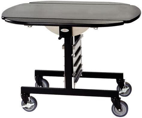 Geneva 74405SB Mobile Oval Top Tri-Fold Room Service Table With Black Finish - 36" X 43" X 31"
