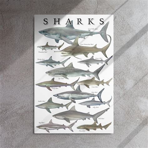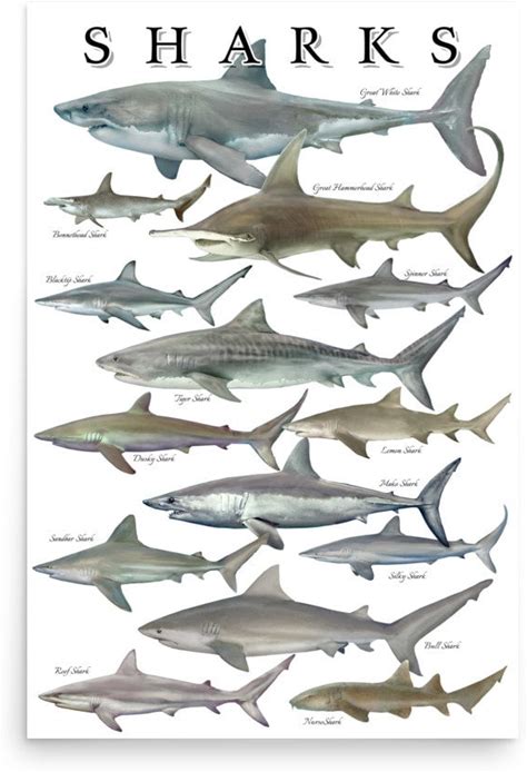 CZOURPVU Types Of Shark Poster Shark Educational Chart Poster12x18inch(30X45cm)